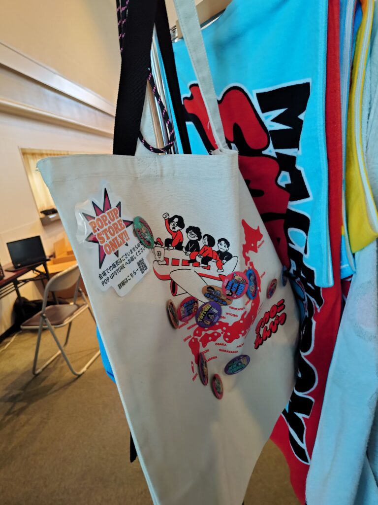 そして各会場限定のピンバッジが販売されていて、見本のトートバッグにくっついていました♪